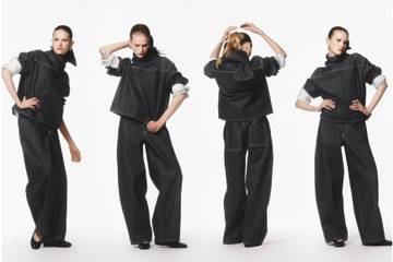 Part of the brand’s Cos Remade initiative, the denim capsule features five "versatile" womenswear styles, including barrel-leg trousers, a straight-line skirt, a rounded funnel-neck jacket, a boat-neck top with an integrated scarf, and an elongated top made from a single piece of fabric that elegantly falls around the body using fold techniques.