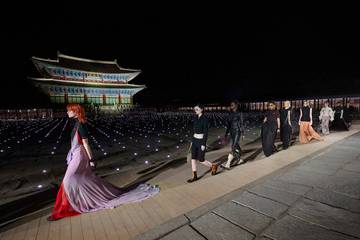 The show was “the first of its kind” to take place in Seoul’s cultural landmark, set to a score that included pieces by local composer Jung Jae-il with a collection that aimed to present an urban wardrobe inspired by the streets of Seoul itself, as well as the customs of South Korean dress.