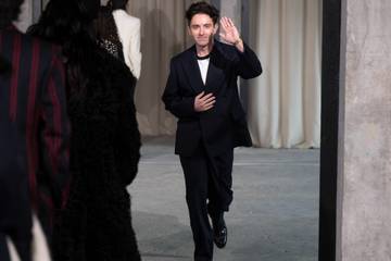 On the walls backstage, the mood board for the collection showed images of a young Mick Jagger, actor Rupert Everett in an oversized shirt and tie, Nicole Kidman wearing a pencil suit, Princess Diana, and lots of spots, stripes and summer ball vibes from Cambridge.