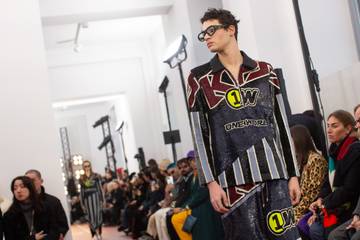 Marking his return to Milan Fashion Week, Dhruv Kapoor reinvented classic tailoring and workwear codes, incorporating sporty accents and a vibrant blend of prints and textures. Graphic tees and printed denim fused fantastical and active elements with the designer’s "1W One World," motif symbolizing his vision for unity beyond gender, borders, or backgrounds. Pieced, patched, and spliced denim and jersey illustrated the label’s commitment to sustainability, giving a second life to surplus materials in order to reduce waste whilst creating unique constructions.