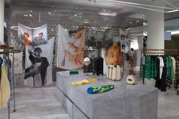 The in-store space showcases the design duo’s Uptown Top Ranking collaboration, which includes a selection of safari jackets, knitwear, graphic t-shirts and cotton polos.