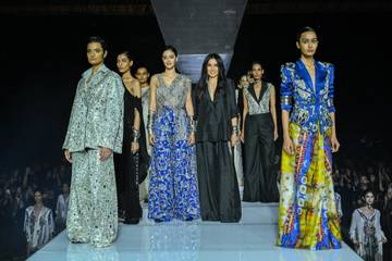 Bringing together contemporary elegance and timeless sophistication, AK|OK Anamika Khanna’s collection, Silver Collar, mirrored the ethos of Lakmē’ latest beauty launch. The show also debuted Lakmē' new 9 to 5 Hya-Matte range, a breakthrough beauty innovation crafted for the unstoppable modern working woman. Inspired by the same, AK|OK Anamika Khanna curated a line that exuded power, poise, and effortless charm—perfectly balancing strength and grace. Her signature style, known for its intricate craftsmanship and modern sensibility, found new expression through ensembles that redefined power dressing in a world where beauty and confidence go hand in hand.