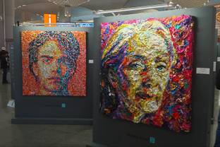 Turkish visual artist Deniz Sağdıç makes stunning portraits out of textile waste, among other things. From afar, they look like paintings, done in bold strokes and colours. When coming closer, the viewer is astounded to find that each portrait is made out of thousands of small objects, waste products like discarded zippers, buttons, old museum...