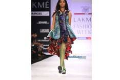 At the LFW Summer/Resort 2011, his collection was inspired by the clowns and jokers of Gotham comics. He called it ‘Never-the-less’ and developed enigmatic images and transferred them to his collection. The cuts were innovative and he added smart deconstructed and deformed looks and fun texturing details such as checks, stripes, pleats, prints and embroidery. The silhouette and drapes were asymmetrical for the jackets and skirts. From monochrome tones to primary and secondary colors, he added some clever deconstructed deformed looks and showed a line that worked rather well between ready-to-wear and high fashion. His texturing moved from checks, stripes, pleats and then to prints with embroidery. Using cotton, silk, satin and chiffon to present some interesting contradictions to his collection, he had a wide cocktail to offer. A funky black and white draped asymmetrical ensemble, bubble skirts, long lean contoured jackets and dresses with shoulders or hips emphasis all came together for a fun filled line of clothing that would evoke instant attention for Byas as well as the wearer.